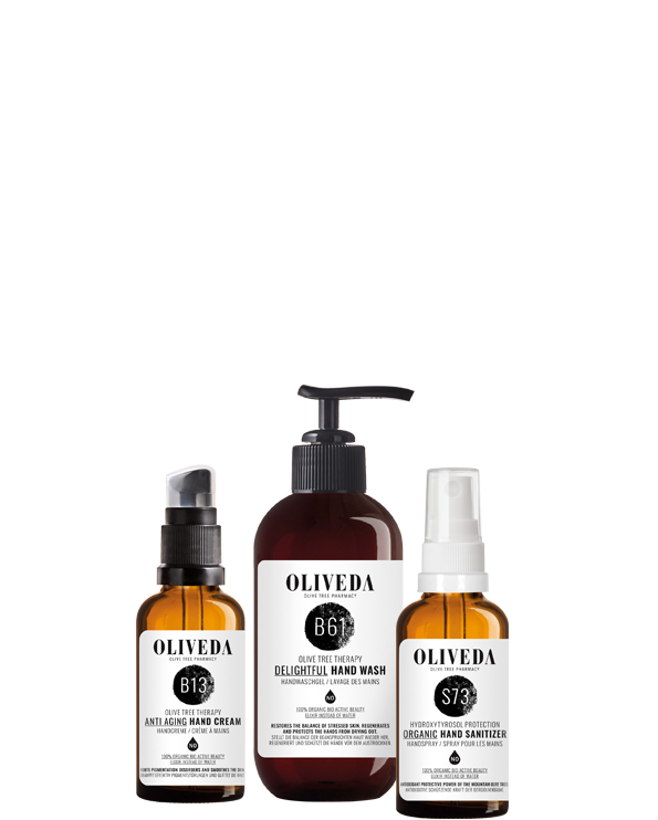 Hygienisch reine Hände dank der antiviralen Kraft unserer Bergolivenbäume.